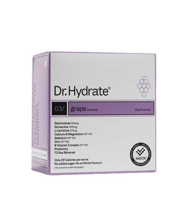 THE ALL-IN-ONE DRINK Dr. Hydrate is the original hydration drink with a scientifically balanced formula of electrolytes, vitamins & minerals. Professional athletes in combination with leading scientists set out to create a great-tasting hydration drink that not only replaced electrolytes, but also fuelled your body to optimise every workout. With no added sugar or artificial flavours, drink to maximise your power to weight ratio. HASTA CERTIFIED Dr. Hydrate is HASTA Certified. Every batch is tested for more than 250 WADA banned drugs. HASTA certification requires Dr. Hydrate to have been through a comprehensive quality review and verification testing.