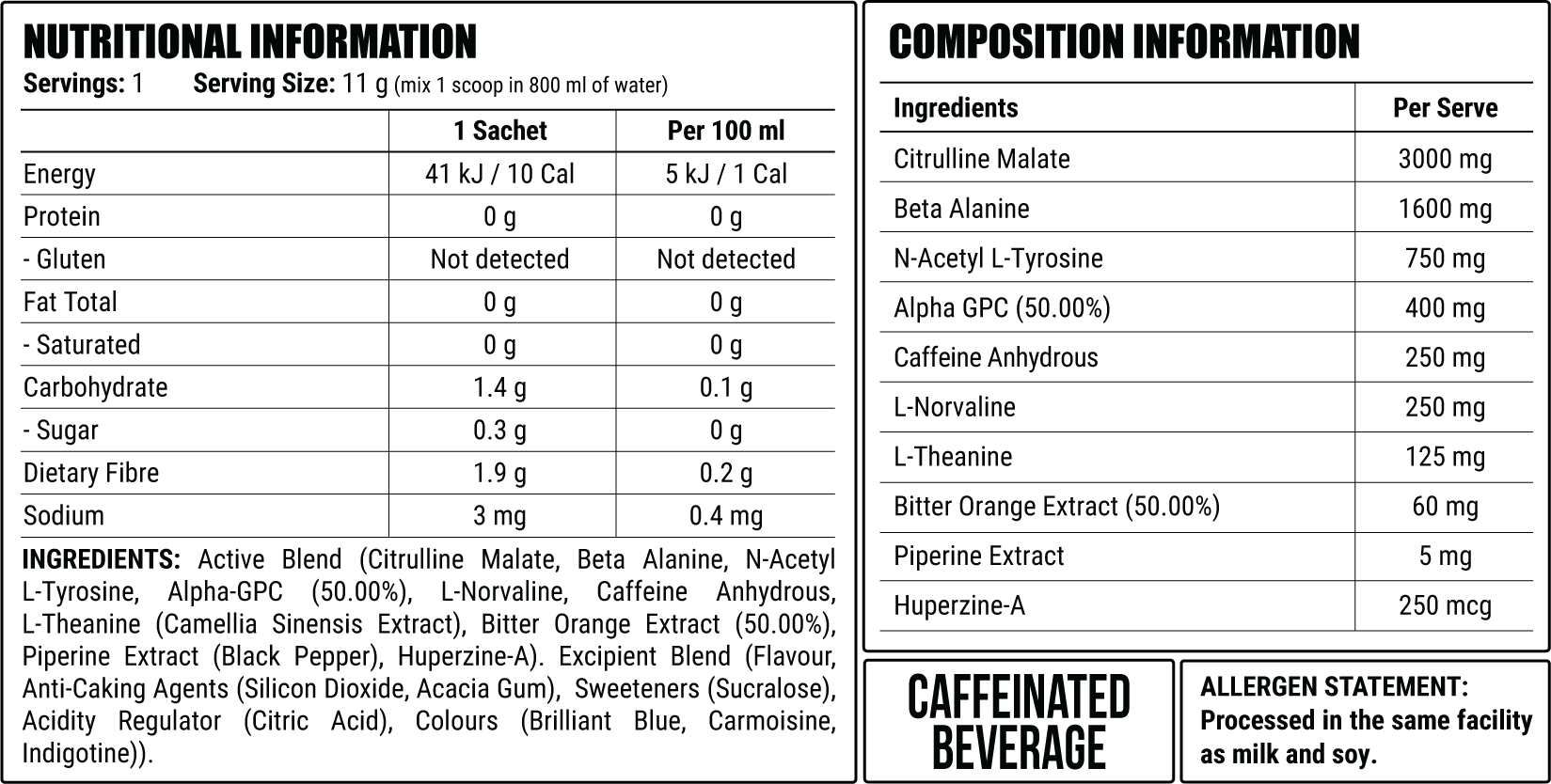 • FULLY TRANSPARENT LABEL SO YOU KNOW WHAT’S IN EVERY SCOOP OF YOUR PRE WORKOUT POWDER